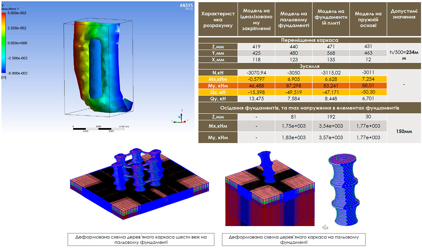 Напряженно-деформированное состояние диагрида из клееной древесины при различных типах фундаментов с учетом комплекса