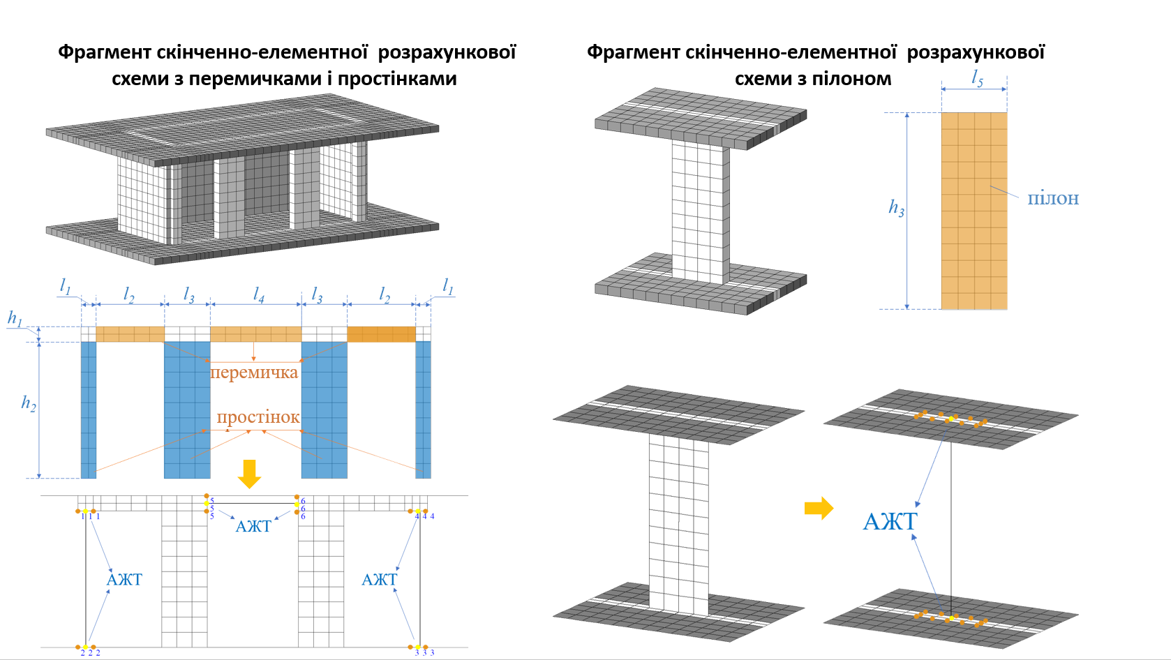 При моделюванні будівельних конструкцій методом скінченних елементів використовуються скінченні елементи різної розмірності: стержневі, пластинчасті та об'ємні. Вибір того чи іншого типу скінченного елементу залежить від різних факторів (забезпечення достатнього ступеня відповідності між математичною моделлю та дійсною роботою конструкції, що моделюється, в заданих умовах; моделювання коректного вузла примикання до інших елементів; зручність збору навантаження, аналізу результатів та конструювання).