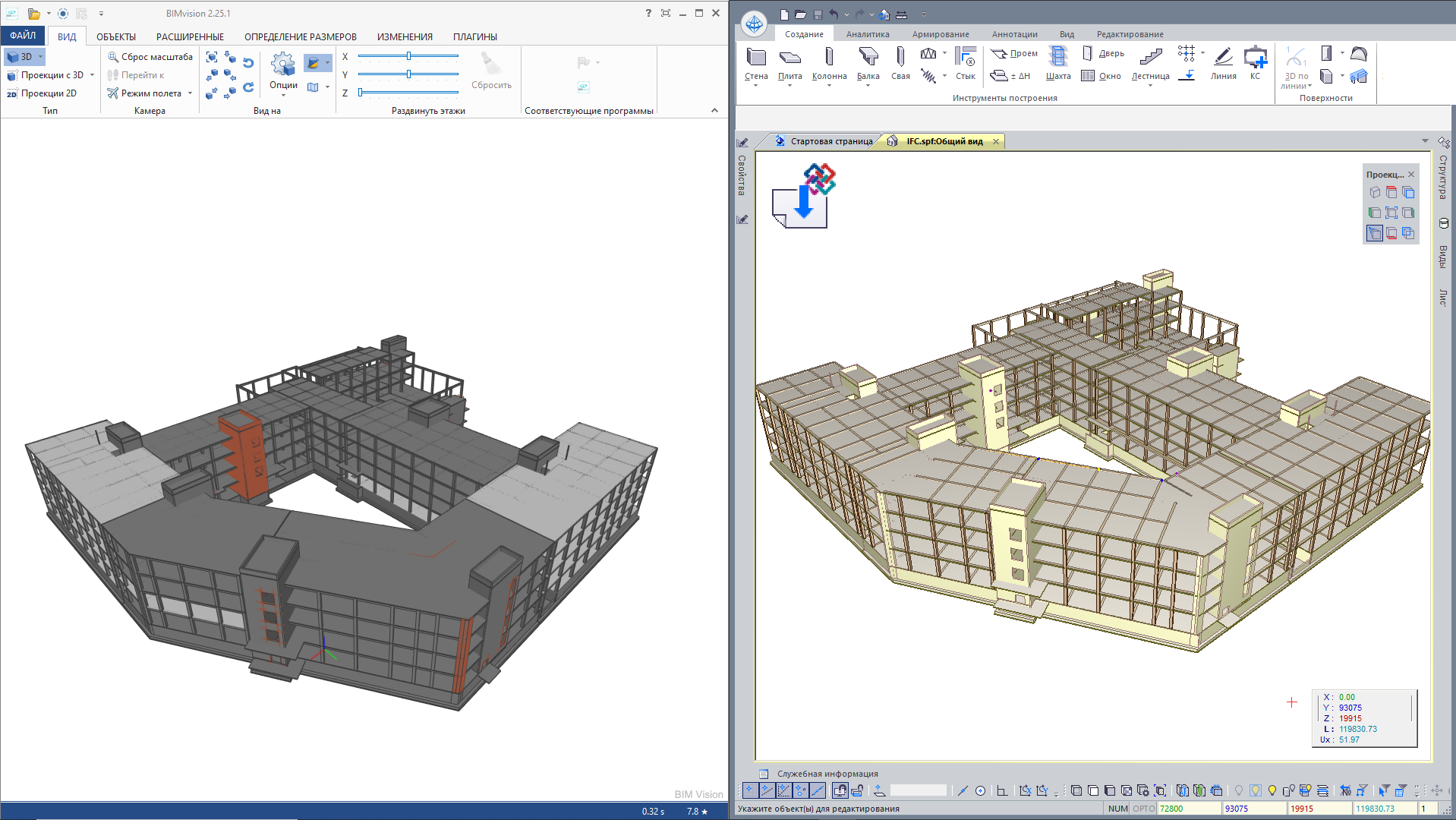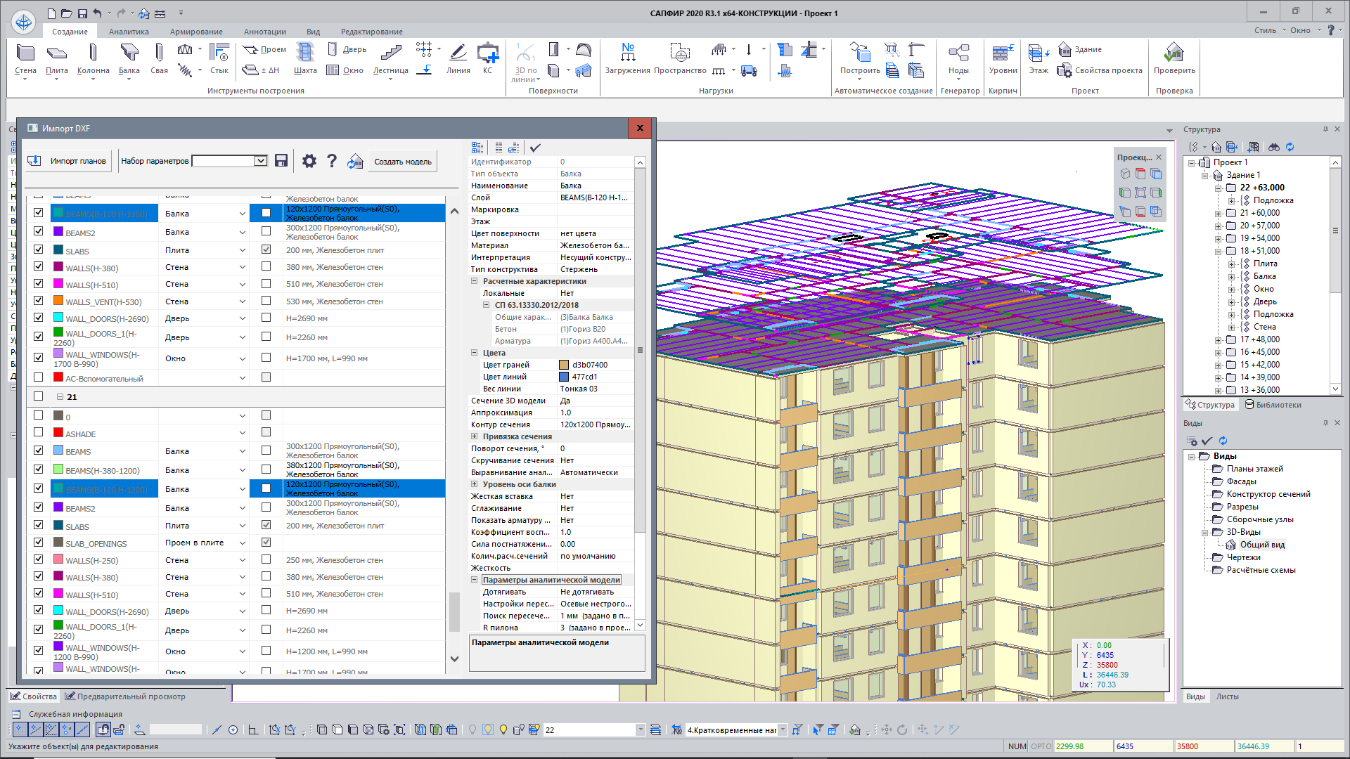 Створення BIM моделі виконується за допомогою САПФІР-Генератора на основі креслення DXF з автоматичним розпізнаванням товщин елементів та габаритів перерізів. При зміні підложки DXF можна виконати динамічне оновлення всієї моделі, побудованої на базі підложок.