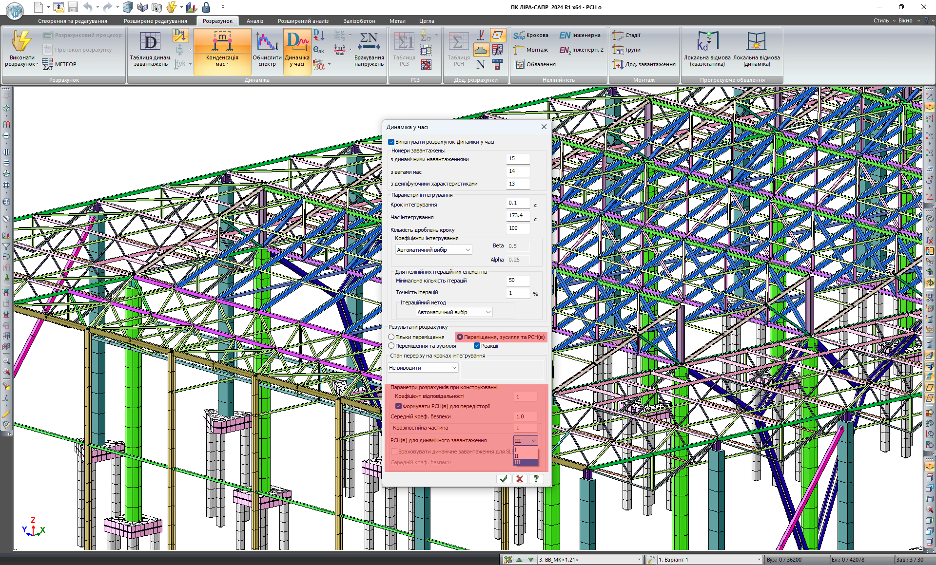 Для європейських норм та норм заснованих на європейських стандартах з проектування у будівництві (EN 1990:2002+A1:2005, СП РК EN 1990:2002+A1/2011 тощо) за результатами розрахунку задач динаміки у часі реалізована можливість формувати визначальні зусилля РСН(о).