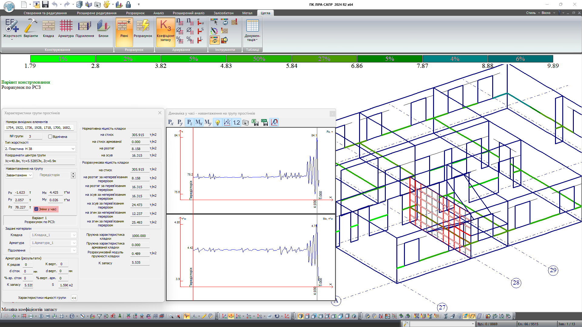 Система "Динаміка у часі" застосовується для вирішення як лінійних, так і нелінійних задач, надаючи ефективний інструмент для більш точного та гнучкого моделювання динамічних процесів, а також виконання перевірки несної здатності конструктивних елементів (залізобетонних, сталевих, армокам'яних конструкцій).