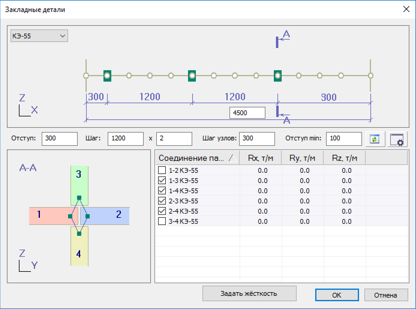 Розстановка в'язів по закладним у препроцесорі САПФІР