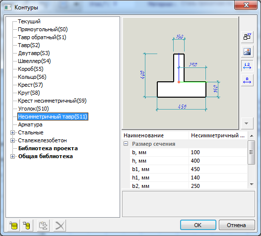 Стандартні масивні перерізи задаються за допомогою прототипів, які зберігаються у відповідній бібліотеці – прямокутник, тавр симетричний та несиметричний, двотавр симетричний та несиметричний, швелер, кільце, коло, коробка, хрест симетричний та несиметричний, куточок симетричний та несиметричний.