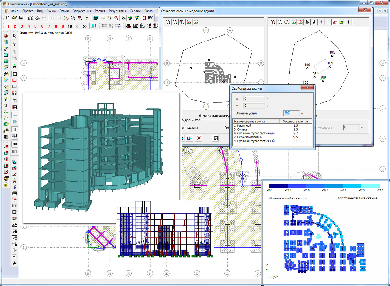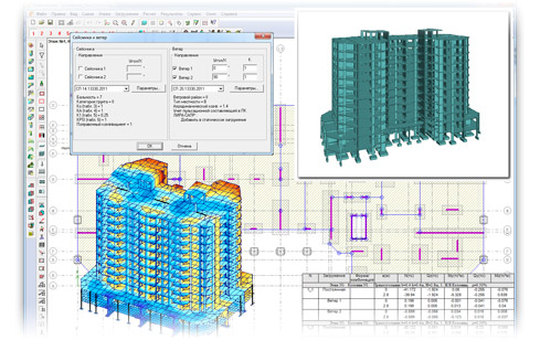 програма для проектування багатоповерхових каркасних будівель із монолітного залізобетону, а також будівель із цегляними стінами.