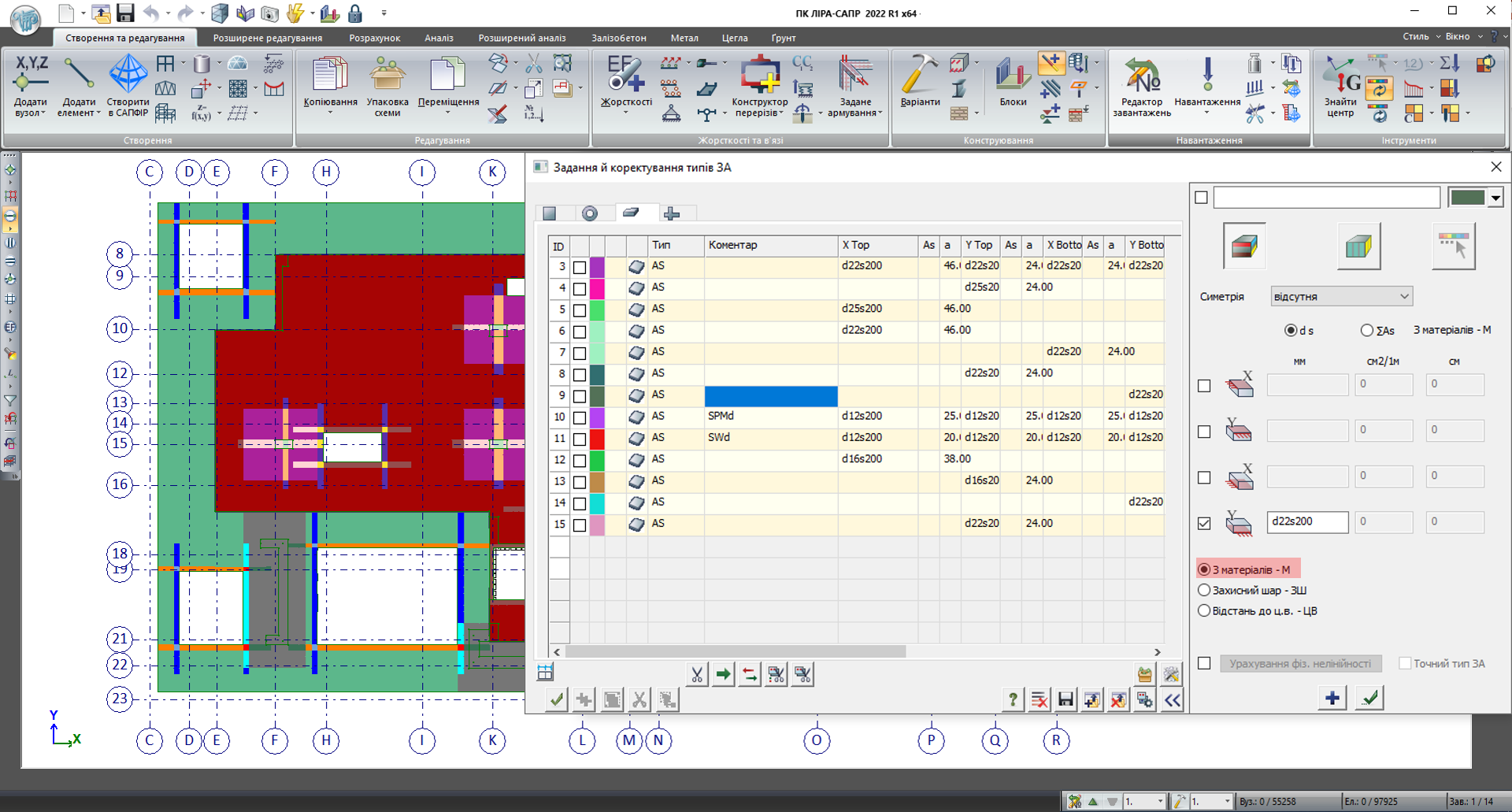 Для проектування конструкцій із залізобетону згідно з цими нормами LIRA-FEM має необхідний набір функцій задання вихідних даних та аналізу отриманих результатів.