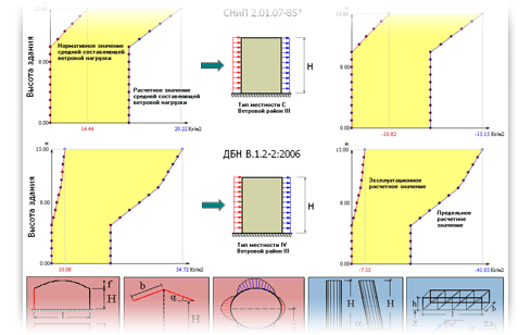 Відповідно до ДБН В.1.2-2:2006 «Навантаження та впливи» обчислюються граничні та експлуатаційні розрахункові значення вітрового навантаження. Аеродинамічний коефіцієнт визначається за схемами Додатка И.