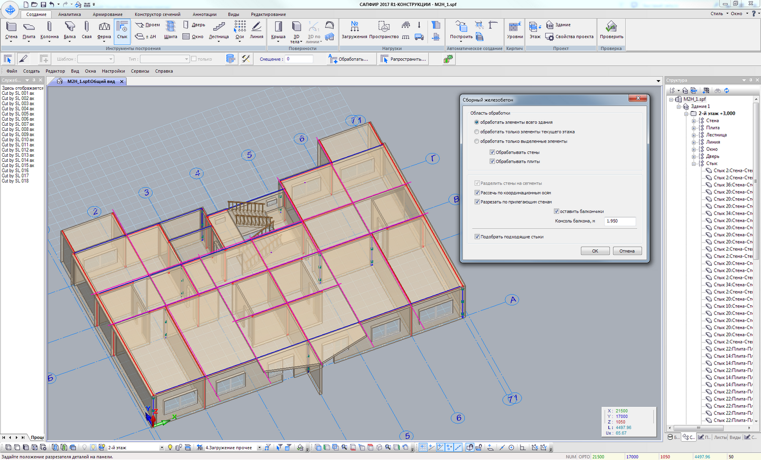 Розстановка в'язів по закладним у препроцесорі САПФІР