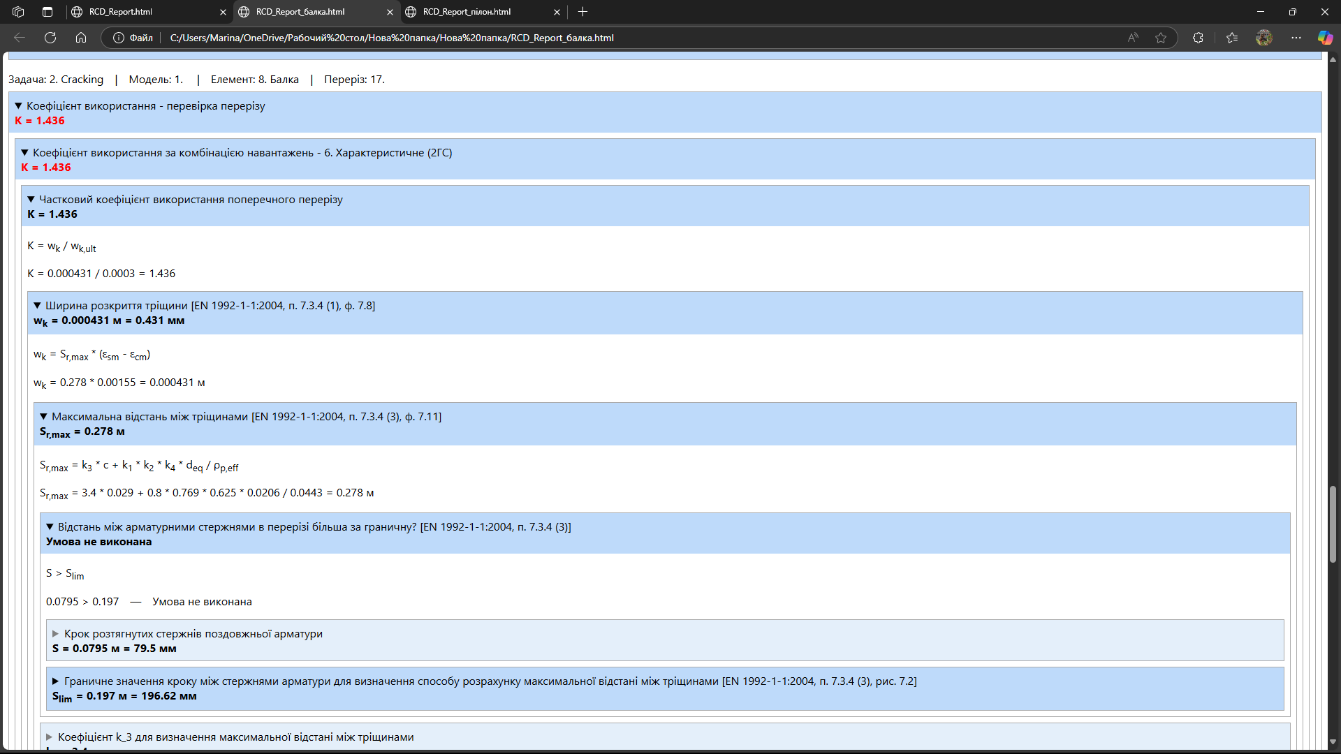 - Для стін і плит: перевірка міцності нормальних перерізів та тріщиностійкості за ДБН і EN 1992-1-1.