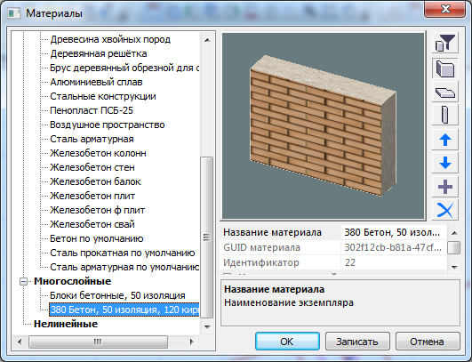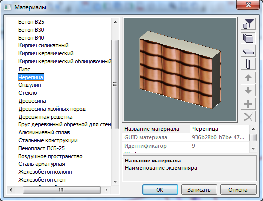 Для завдання матеріалу перерізу та/або його складових частин використовується велика бібліотека різних матеріалів. Бібліотека матеріалів може бути легко доповнена новими матеріалами. Допускається також коригування даних про матеріали, що містяться в бібліотеці.