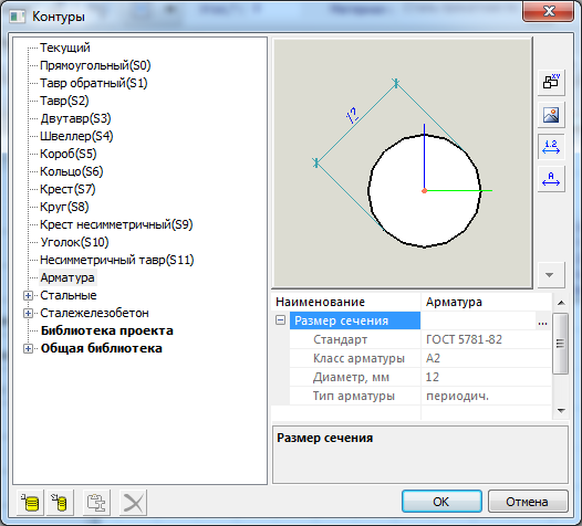 Стандартні профілі сталевого прокату задаються за допомогою вибору безпосередньо з великої бібліотеки відповідних сортаментів.