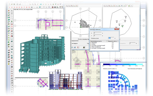 програма для проектування багатоповерхових каркасних будівель із монолітного залізобетону, а також будівель із цегляними стінами.