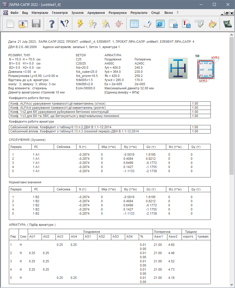 Конструювання окремого залізобетонного елемента відповідно до нормативних вимог. ЛАРМ входить до всіх стандартних конфігурацій LIRA-FEM.
