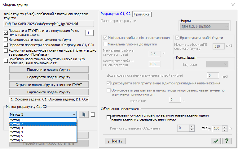 Метод 6 – визначення коефіцієнтів пружності основи C1 з урахуванням впливу динамічних хвиль на пружні властивості ґрунту.