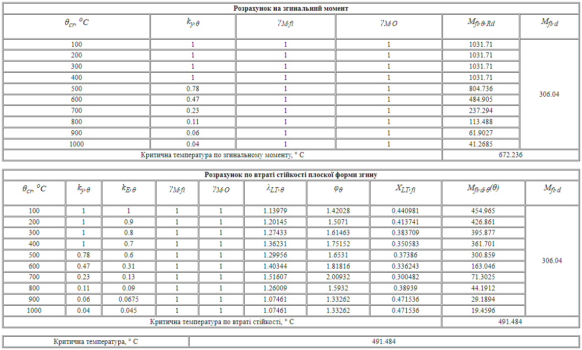 Розрахунок критичної температури елементів сталевих конструкцій по Eurocode 3